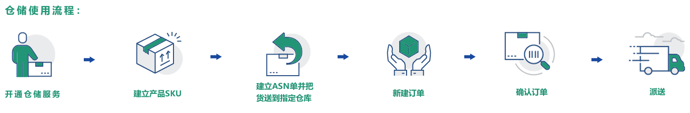 美國(guó)海外倉入庫——核驗(yàn)——上架——銷售——訂單抓取——配貨打包——簽出——路郵——簽收